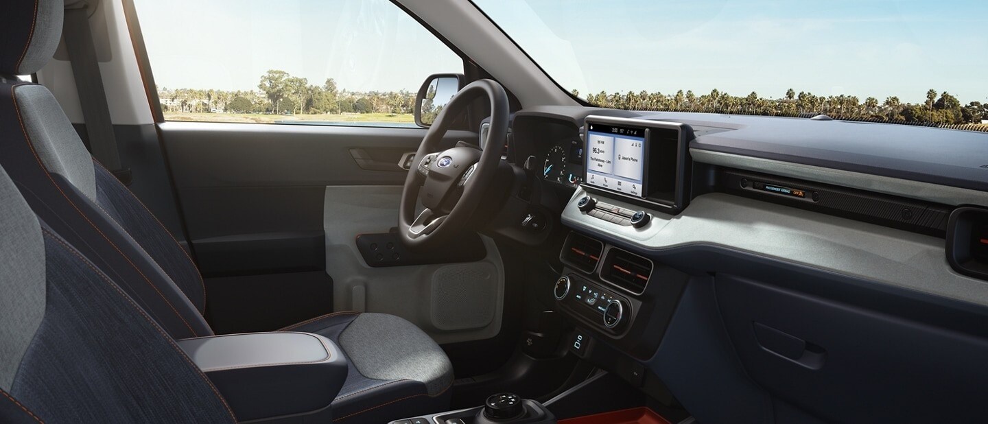 The interior of Maverick® is loaded with tech, from touchscreen displays to available driver-assistance features. Make Maverick® yours with customizable trims and materials, and enjoy the versatility of clever storage and seating for up to five.