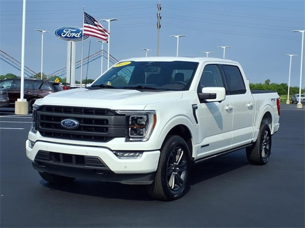 2023 Ford F-150 4WD Lariat 10-Speed Automatic Star White Metallic Tri-Coat 4D SuperCrew 3.5L PowerBoost Full-Hybrid V6 NAVIGATION, SYNC Bluetooth Technology, SUNROOF, ALLOY WHEELS, TRAILER TOW, CARFAX ONE OWNER, LEATHER HEATED & COOLED FRONT SEATS, F-150 Lariat, 4D SuperCrew, 3.5L PowerBoost Full-Hybrid V6, 4WD, 2nd Row Heated Seats, Accent-Color Angular Step Bars, Active Park Assist 2.0, Alloy wheels, Bed Utility Package, Body-Color Front & Rear Bumpers, Box Side Decals, BoxLink, Chrome Single-Tip Exhaust, Class IV Trailer Hitch Receiver, Connected Built-In Navigation, Dark 2-Bar & 1 Minor Bar Style Grille, Equipment Group 502A High, Evasive Steering Assist, Ford BlueCruise 1.0, Ford Co-Pilot360 Assist 2.0, GVWR: 7,350 lbs Payload Package, Integrated Trailer Brake Controller, Intelligent Adaptive Cruise Control w/Stop & Go, Intersection Assist, Lariat Sport Appearance Package, LED Box Lighting, LED Projector w/Dynamic Bending Headlamps, Navigation System, Power Tilt/Telescoping Steering Column w/Memory, Rain-Sensing Wipers, Speed Sign Recognition, Tailgate Step w/Tailgate Work Surface, Trailer Tow Package, Wheels: 20" 6-Spoke Dark Alloy Painted Aluminum, Wireless Charging Pad.