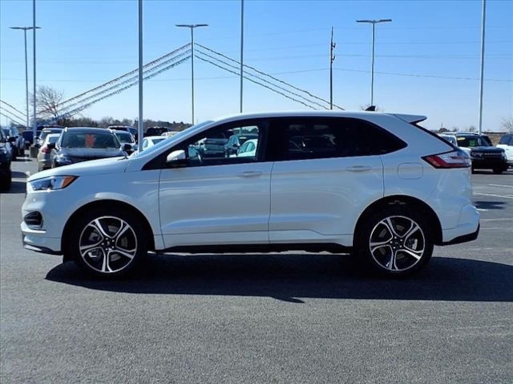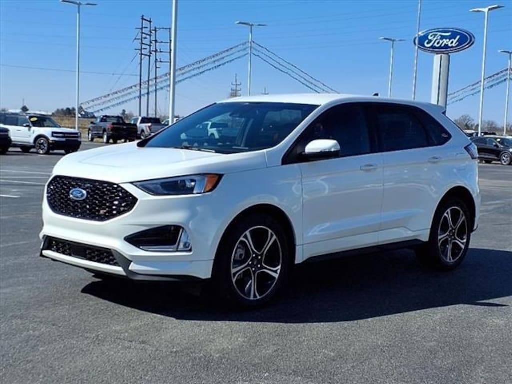 2024 Ford Edge AWD ST 7-Speed Automatic Star White Metallic Tri-Coat 4D Sport Utility 2.7L V6 EcoBoost Clean CARFAX. NAVIGATION, SYNC Bluetooth Technology, ALLOY WHEELS, NO ACCIDENT CARFAX, CARFAX ONE OWNER, LEATHER HEATED FRONT SEATS, POWER LIFTGATE, Edge ST, 4D Sport Utility, 2.7L V6 EcoBoost, AWD, Adaptive Cruise Control w/Stop & Go, Connected Navigation, Equipment Group 400A, Evasive Steering Assist, Ford Co-Pilot360 Assist+, Lane Centering, Wheels: 20" Bright-Machined Aluminum.